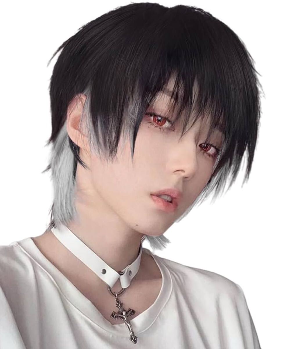 Product name: ウィッグメンズ ウルフ インナーカラーグレー 黒髪男装ショートボブ かつら 男性 フルウィッグ 自然ファッションコスプレ クラッセウィック