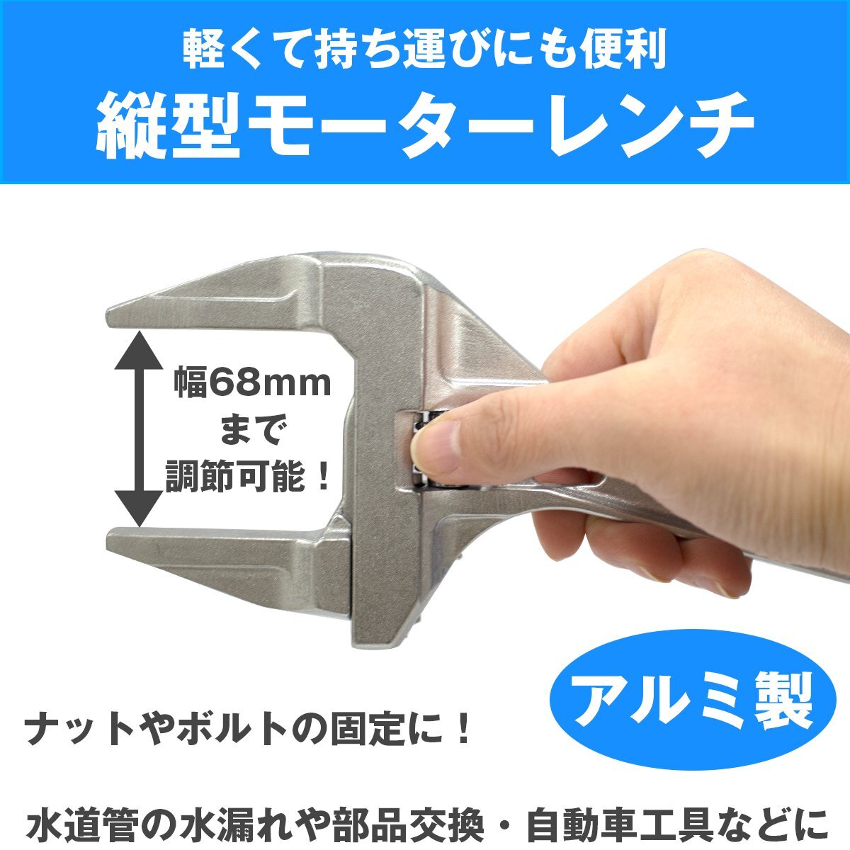 モーターレンチ ワイド モンキーレンチ 最大開口72mm アルミ製 たて型 配管 空調配管 加工 工具 レンチ 水道工事 水道管 DIY