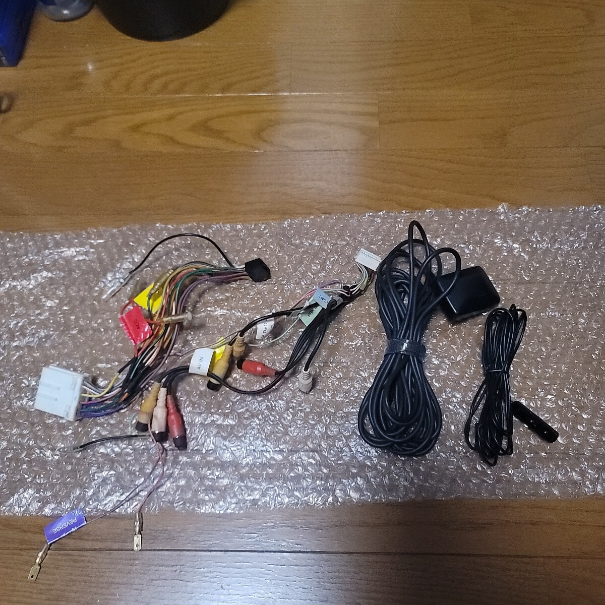 付属品は電源線、バックカメラ入力映像音声入力/映像音声出力線、GPS線、TVアンテナ線のみで画像に写っている物がすべてです。使用や取付けに際して必要な物が有れば購入者様にてご用意して頂き、適合や商品詳細に関してもHPやメーカーさん、ディーラーさん等にて必ず購入者様にてご判断下さいませ。