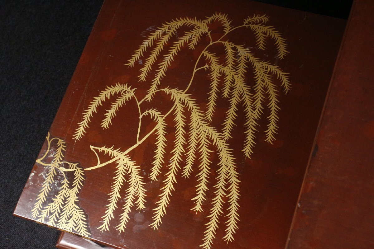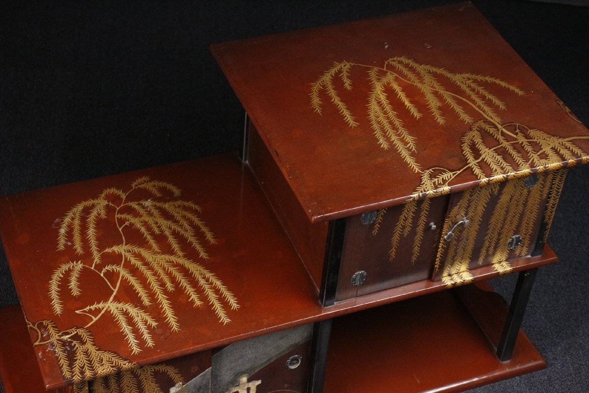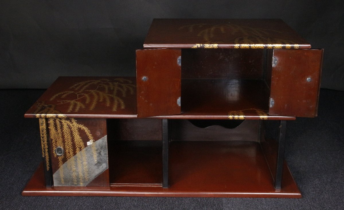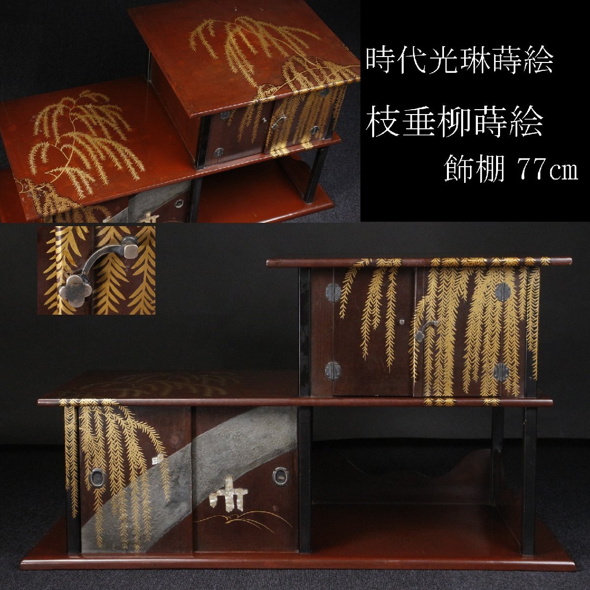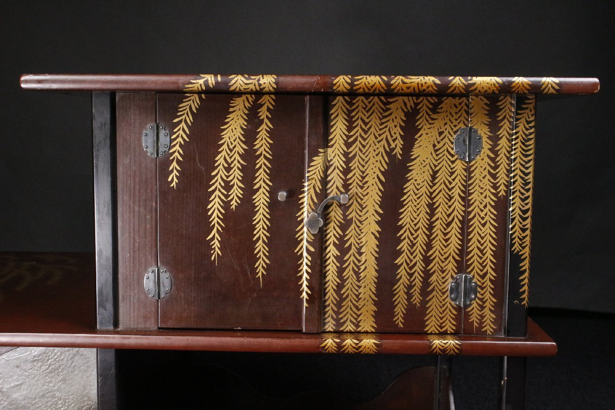 Product name: 【LIG】時代光琳蒔絵 枝垂柳蒔絵飾棚 77㎝ 銀金具 古美術品 古民具 旧家蔵出品 [.QU]25.9
