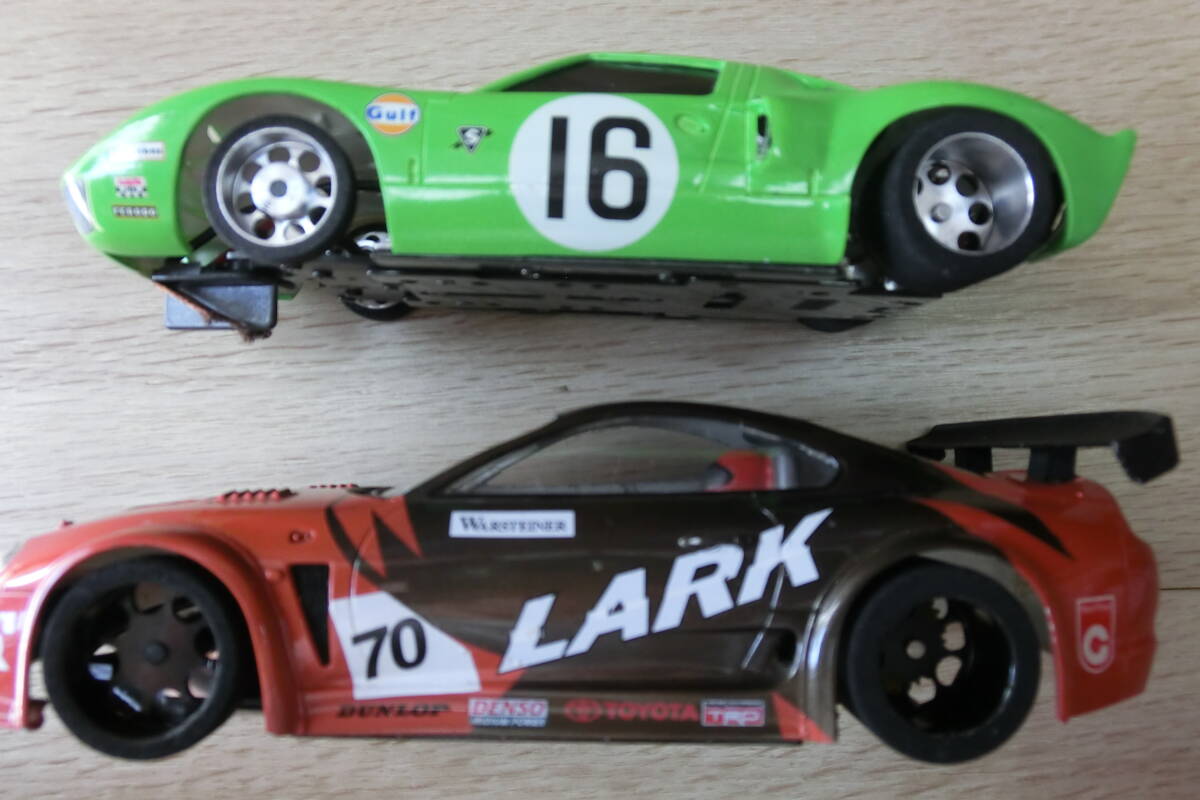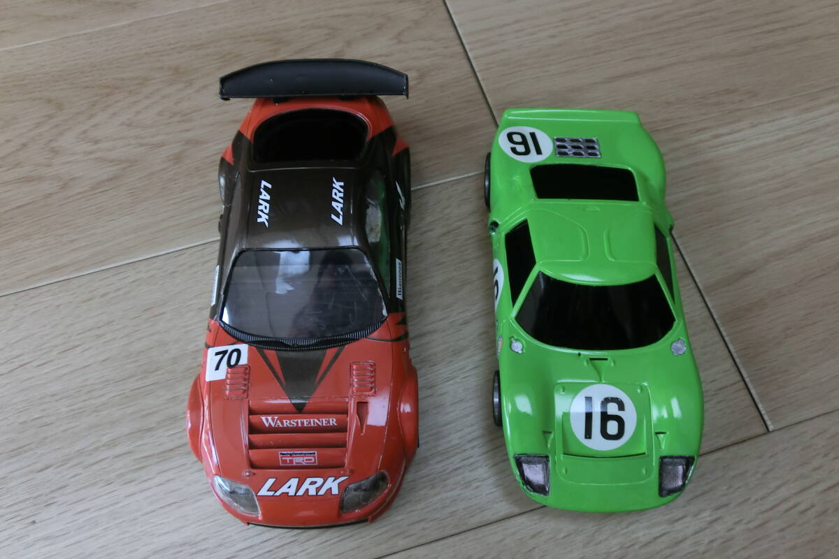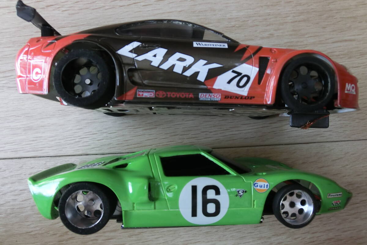 タミヤスープラGTはパンパシシャーシー、ガイドステー、Tバー、サブフレームがカーボンです。サブフレーのがた調整はヘンシンビスを使用しています。 フジミフォードGT40プラフィットシャーシもTバー、サブフレーム、ガイドステーもカーボンです。サブフレーガタ調整はヘンシンビスを使用しております。モーターは2台ともポインターモーター仕様、ボディーはおまけとしてお考えください。中古品ですのでノンリターン、ノンクレームでおねがいいたします。
