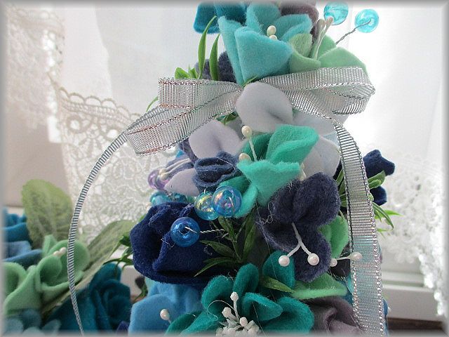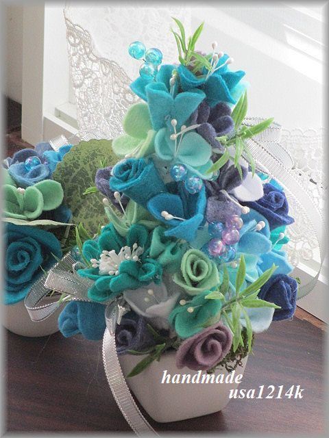Product name: ブルーグリーングラデーション♪お花のクリスマスツリー♪卓上ツリー♪薔薇&ガーベラ♪ハンドメイド♪高さ20cm♪ミニアレンジ付2点セット