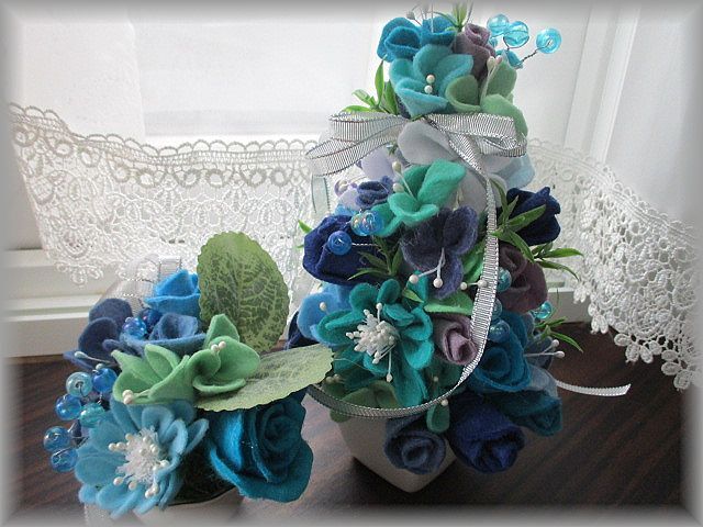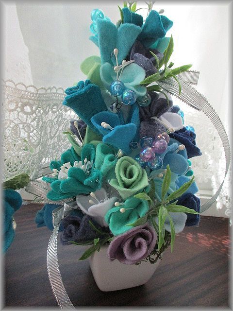 ブルーグリーングラデーション♪お花のクリスマスツリー♪卓上ツリー♪薔薇&ガーベラ♪ハンドメイド♪高さ20cm♪ミニアレンジ付2点セット