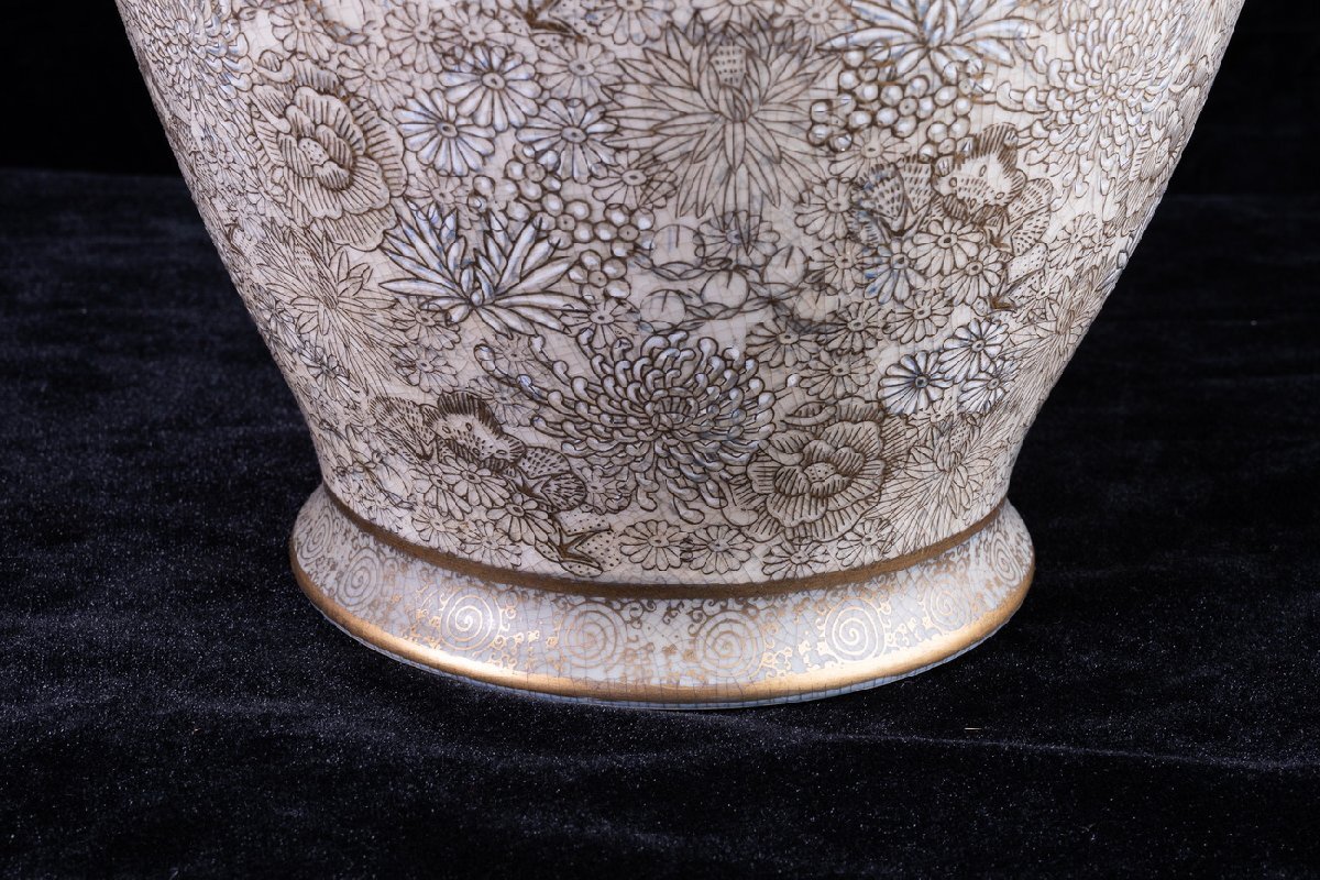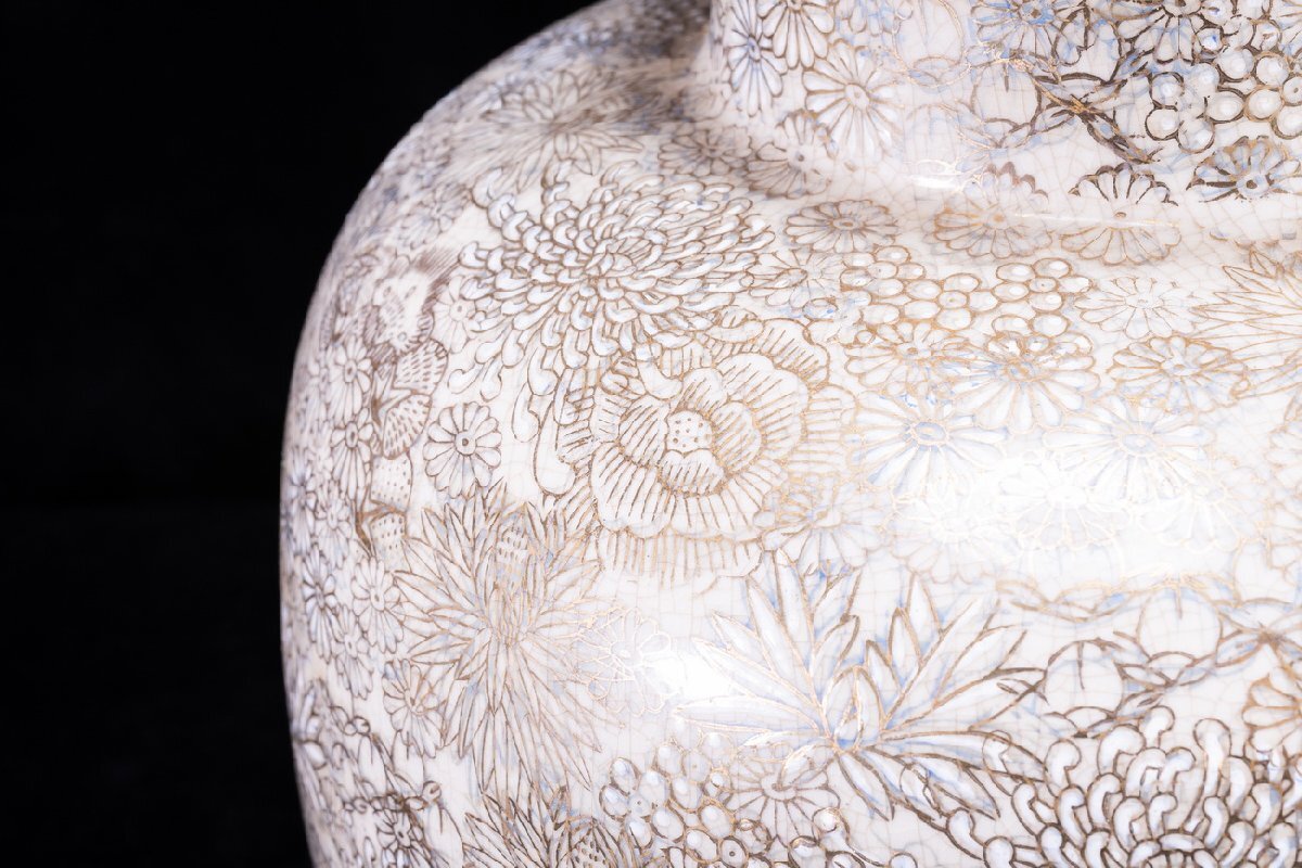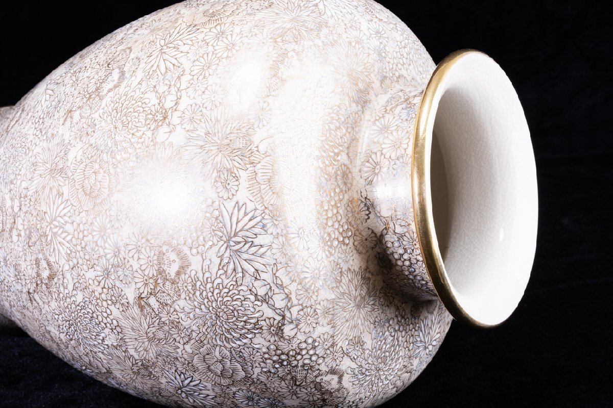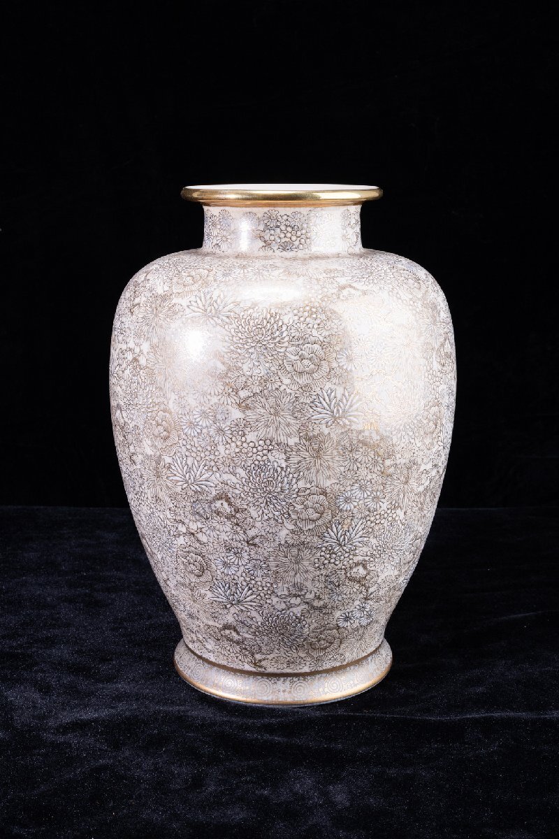 【珍品堂】1円から M64-P01 薩摩焼 金彩 繊細描き 牡丹紋 飾壺 高37㎝ 花器 花生 花入 置物 染付 骨董品 古美術 時代物