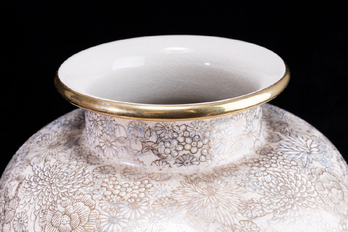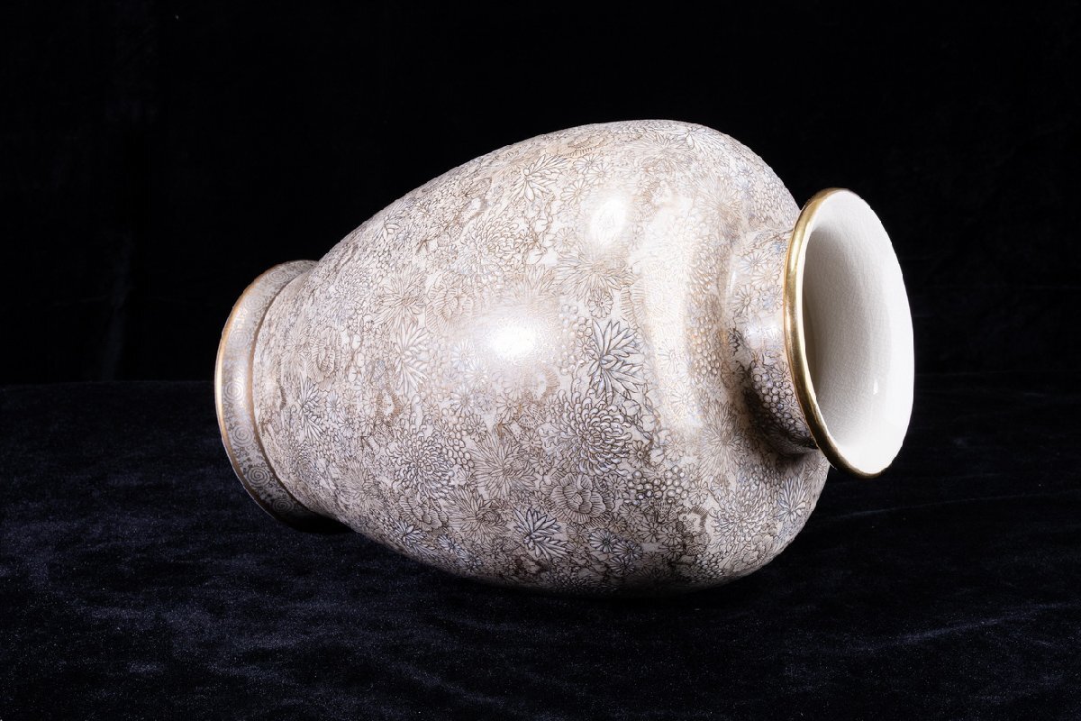Product name: 【珍品堂】1円から M64-P01 薩摩焼 金彩 繊細描き 牡丹紋 飾壺 高37㎝ 花器 花生 花入 置物 染付 骨董品 古美術 時代物