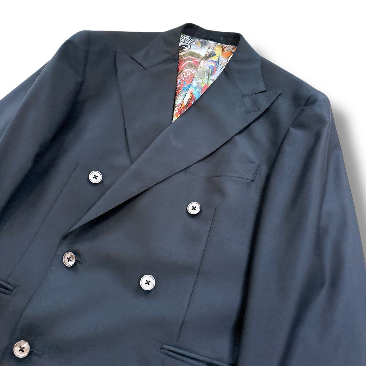 美品 L相当 ONLY オンリー DRAGO ドラゴ Cerimonia ダブルブレスト テーラードジャケット ブラック 黒 裏地総柄 オーダー品 ネーム刺繍入り