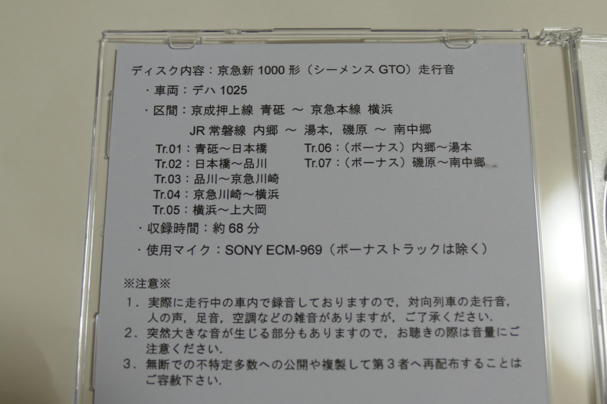Product name: 【自作CD】京浜急行電鉄 新1000形 京成押上線・都営浅草線・京急線 青砥→横浜 走行音CD ②