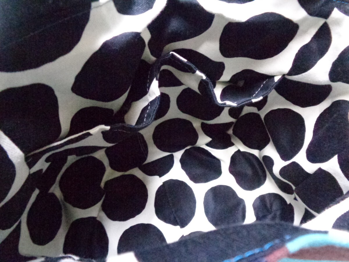 内側は、大きさ5センチの水玉のコットンオックスで。2部屋のポケットを付けました。画像にもありますように、購入時から織り傷がありました。ご了承くださいませ。