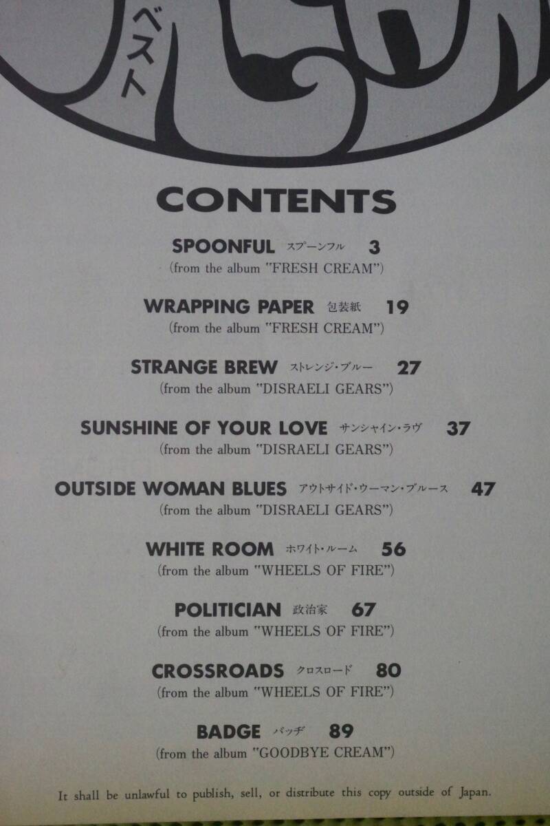 Product name: クリーム・ベスト バンドスコア 9曲 送料185円 /ジャック・ブルース/サンシャイン・オブ・ユア・ラヴ CREAM /CLAPTON