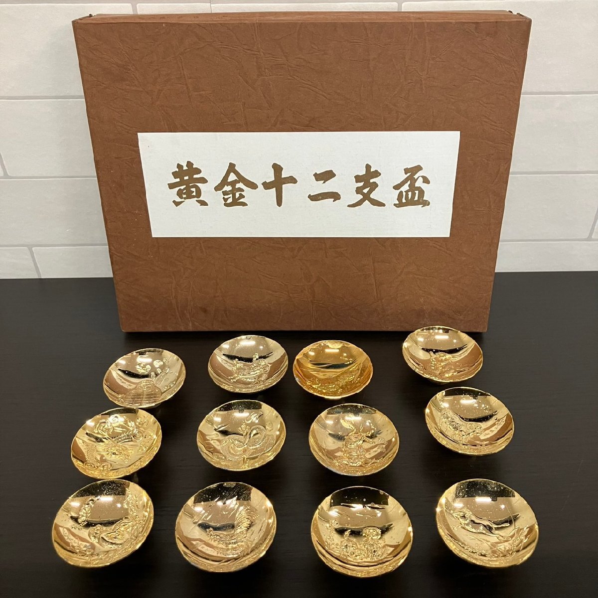 Product name: S283 【黄金十二支盃】 金メッキ 金盃 12点 動物柄 24KGP 刻印 総重量:約294g 箱付き