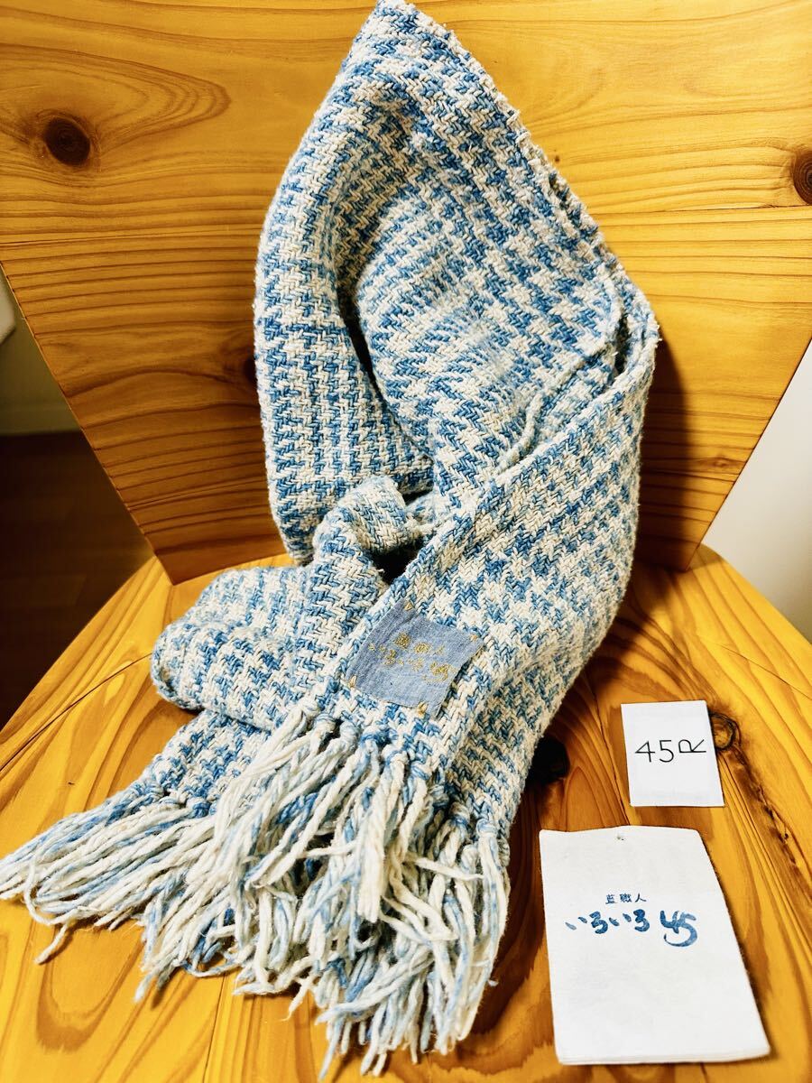 【美品タグ付き】45R 藍職人いろいろ45 藍染めヘリンボンストール 検)45rpm、マフラー、インディゴ