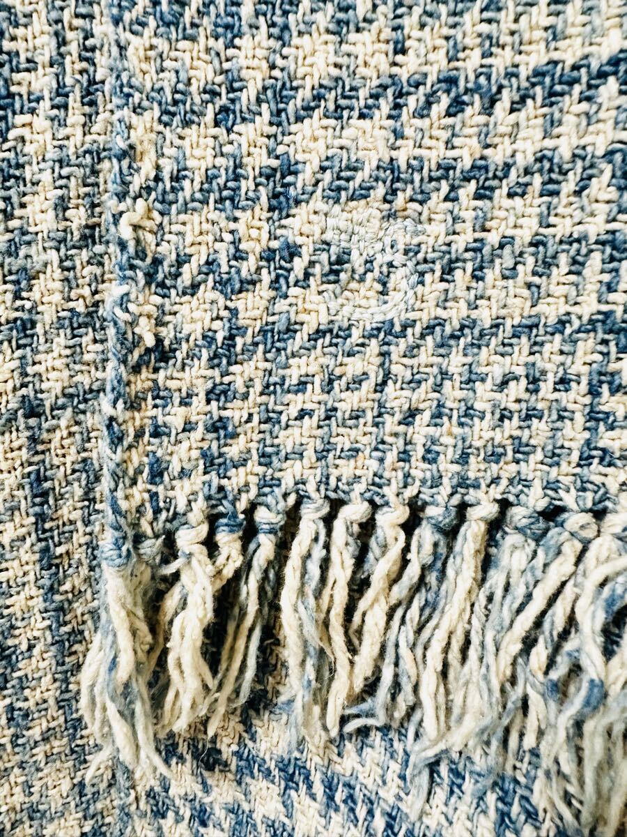 ・オフホワイトとインディゴ糸で、手編みの込んだ藍染のストールです。生産数が少なくレアなお品かと思います。