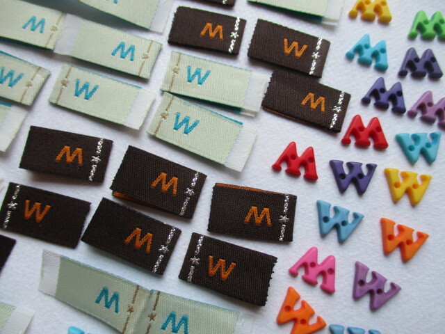 R80◆『W』『M』・ボタン 24 個・刺繍タグ 24 個
