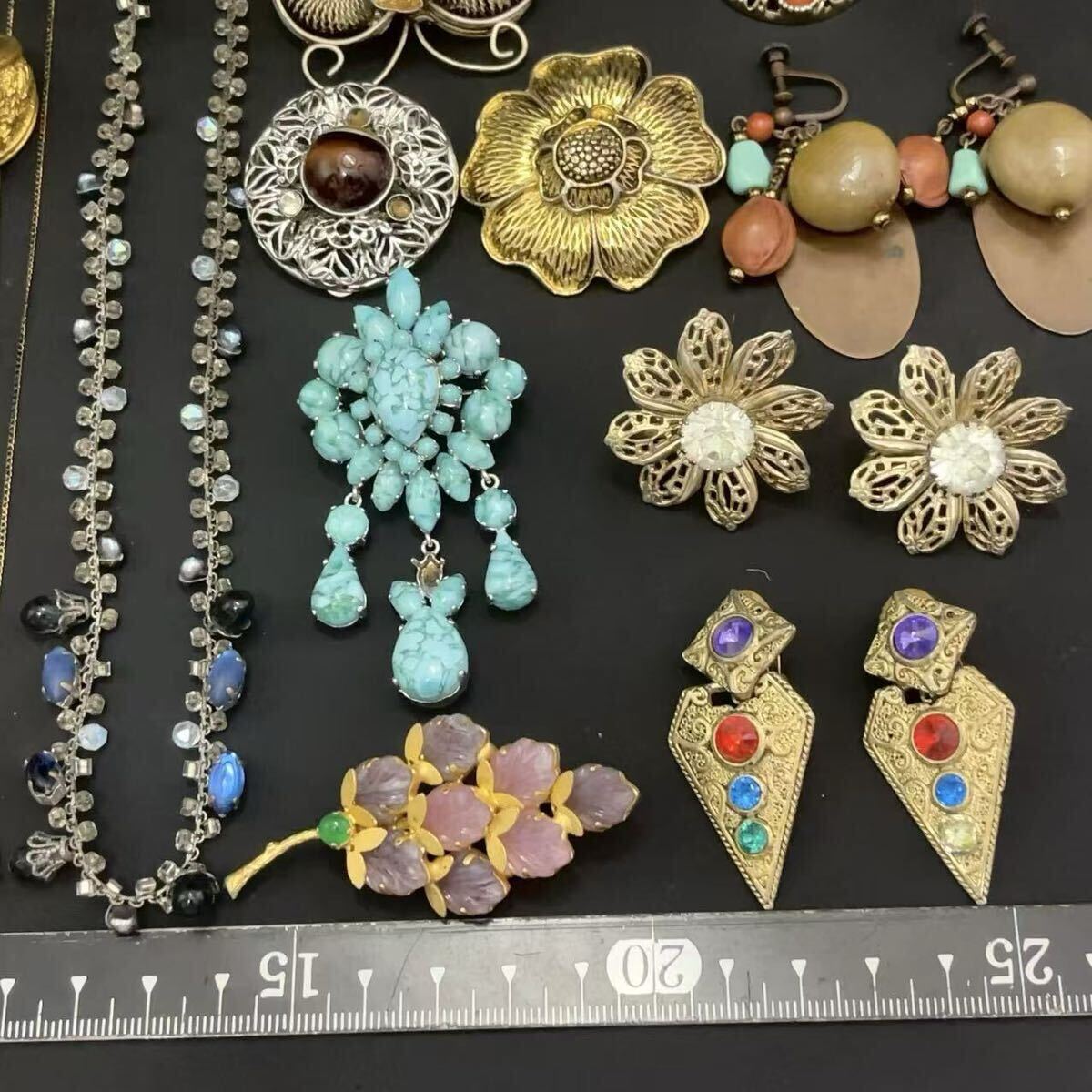 Product name: 1円 ヴィンテージアクセサリー 20点まとめ 約276g 細工極め 透かし彫 ネックレス ブローチ 指輪 イヤリング カラーストーン AUSTRIA製等有