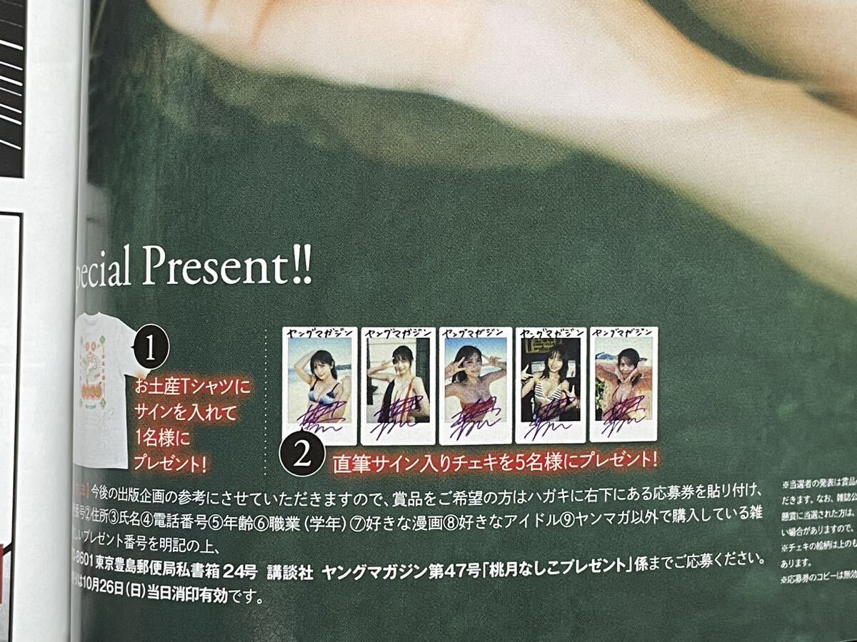 Product name: 【2枚セット】  ヤングマガジン 47号 グラビア プレゼント 応募券 桃月なしこ Mayuri 福田ひなた チェキ 等