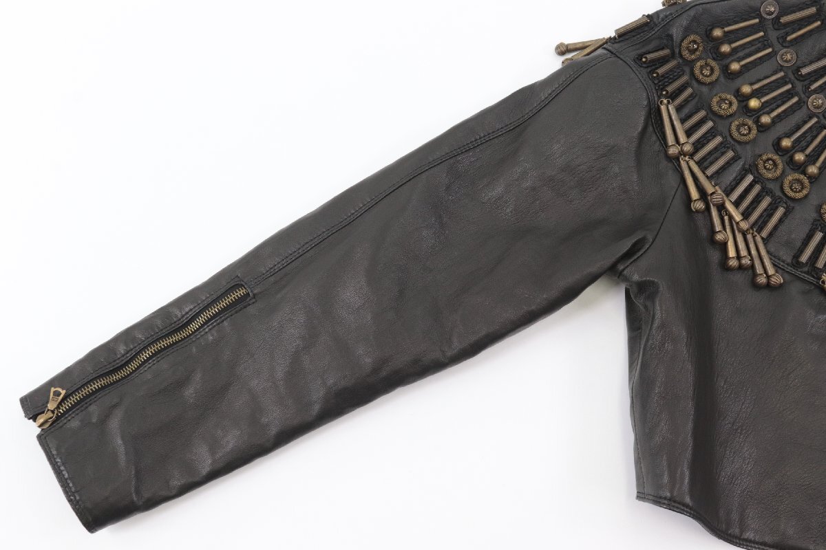 Product name: GIANNI VERSACE ジャンニ ヴェルサーチ ベルサーチ レザー ジャケット アウター ショート 装飾 金属 ブラック 服 レディース 3334-NA