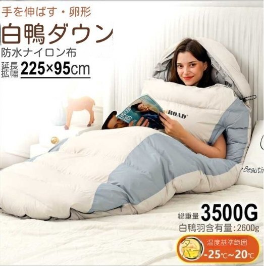 Product name: 封筒型 寝袋 冬用 3.5kgダックダウン -30度耐寒 320T防水 両手出せる可能 防寒 アウトドア キャンプ 収納袋付 丸洗い 防災 登山 車中泊