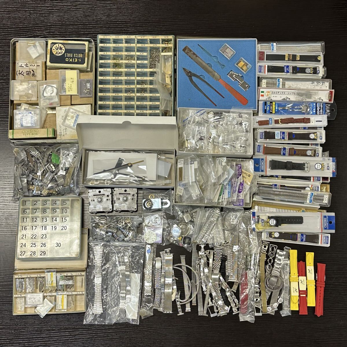【9A30】1円スタート OMEGA SEIKO RHYTYM 他 時計 部品 パーツ ムーブメント ベルト 巻真 針 ネジ 修理道具 部品取り まとめ