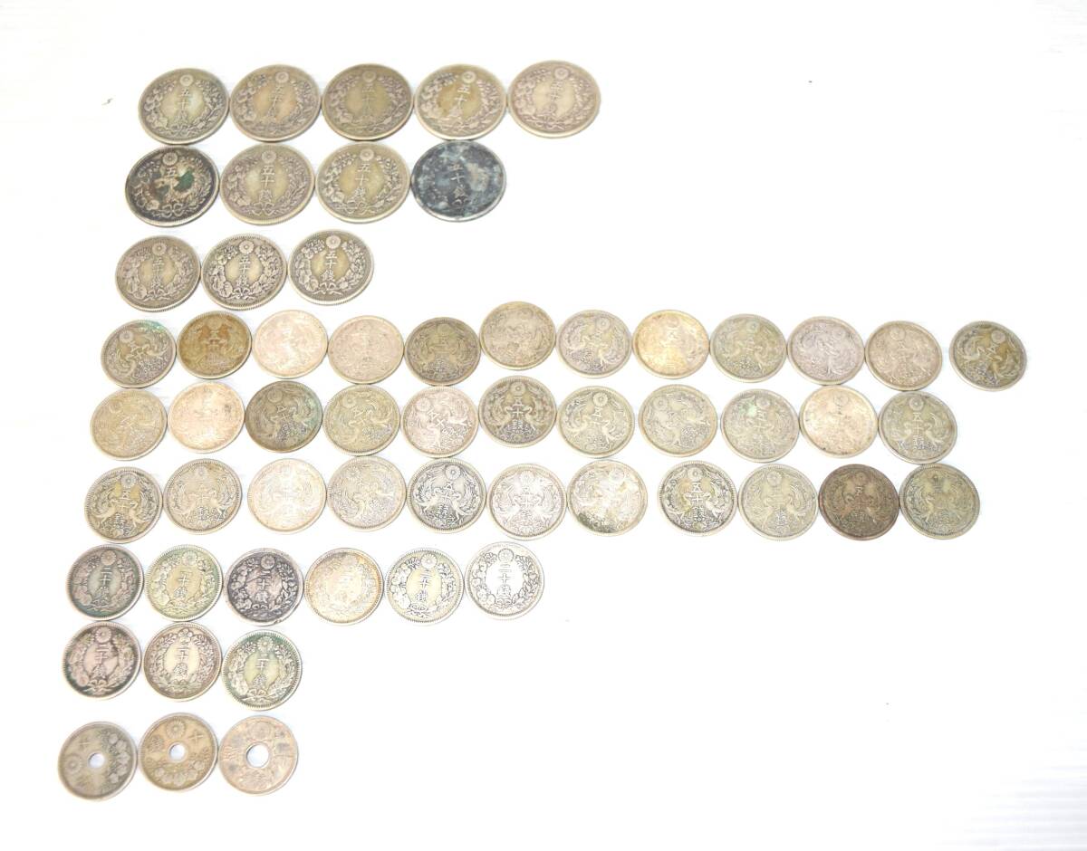Product name: M 旭日竜50銭銀貨 9枚 鳳凰50銭銀貨 34枚 旭日50銭銀貨 3枚 20銭 9枚 10銭 3枚 合計 58枚 総重量 378g 古銭
