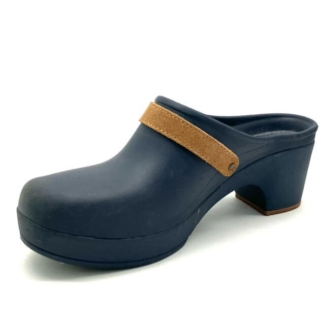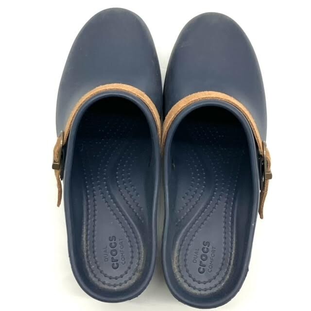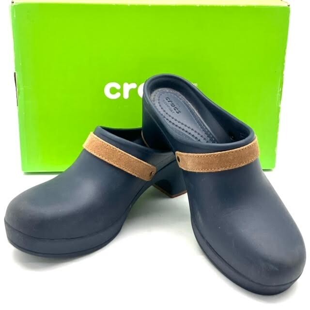 仙10 CROCS サラクロッグ サボサンダル ヒール W8 24cm相当 ネイビー ブラウン 箱付き クロックス レディース