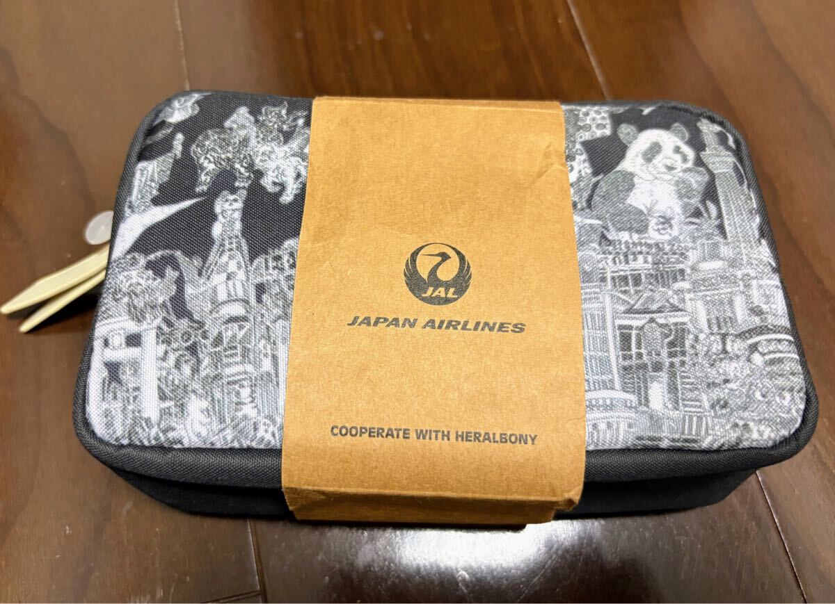 JAL アメニティ 国際線ビジネスクラス ポーチ 日本航空 白黒