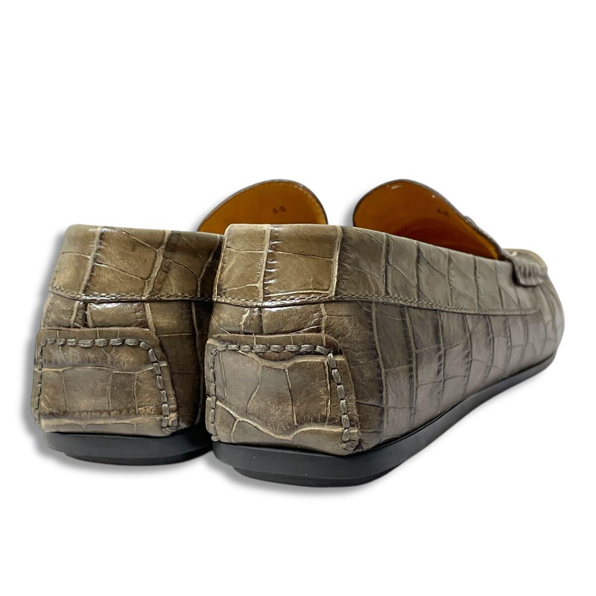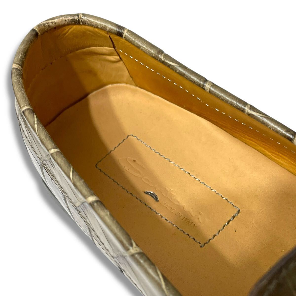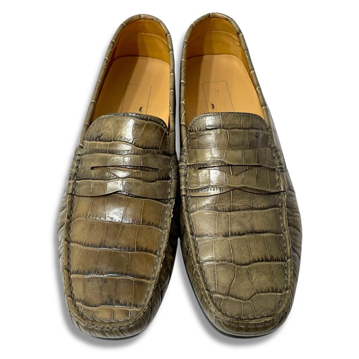 5 美品 正規品 SANTONI サントーニ 11500 G 50 F クロコ型押し コインローファー ドライビングシューズ 6 1/2 グレージュ メンズ グレー