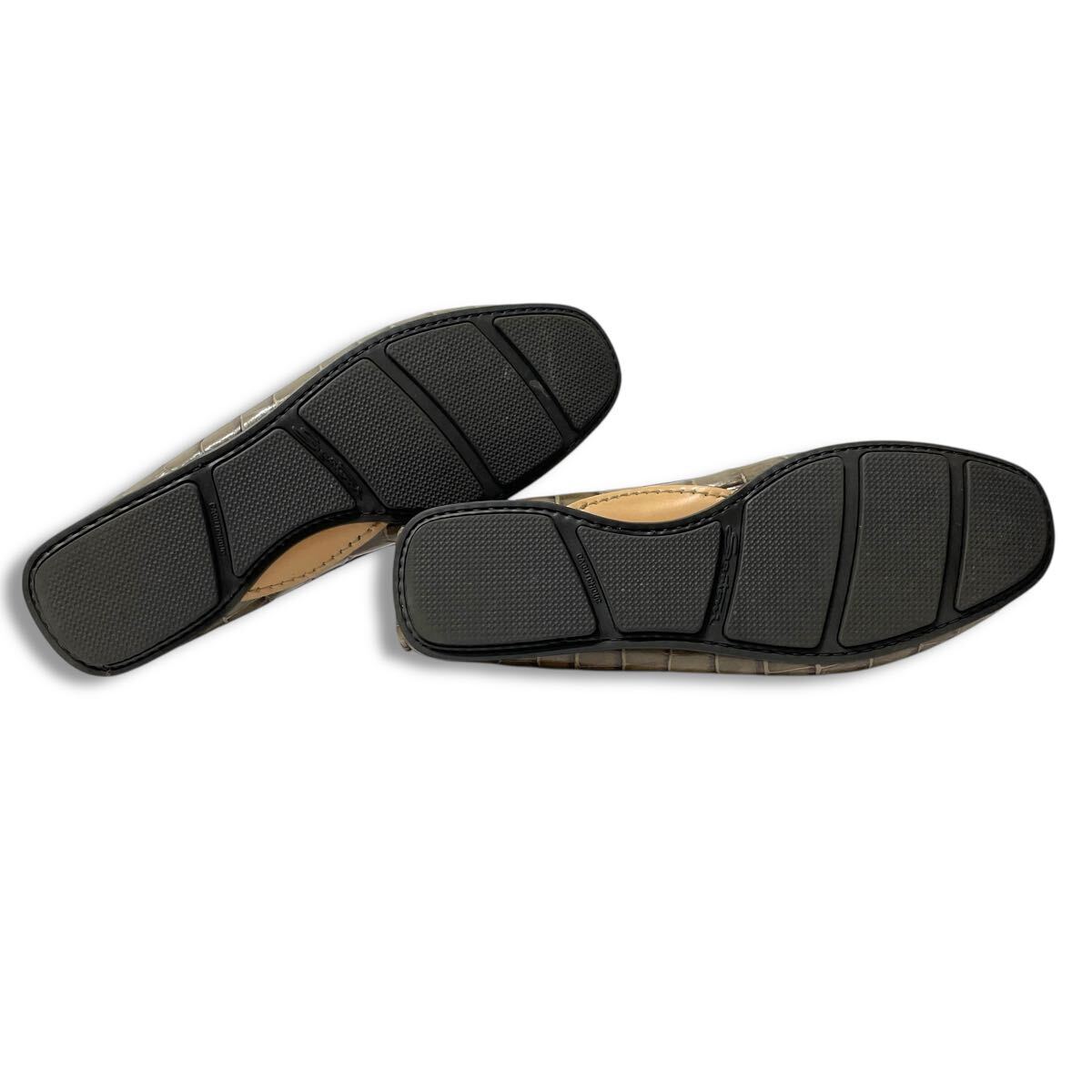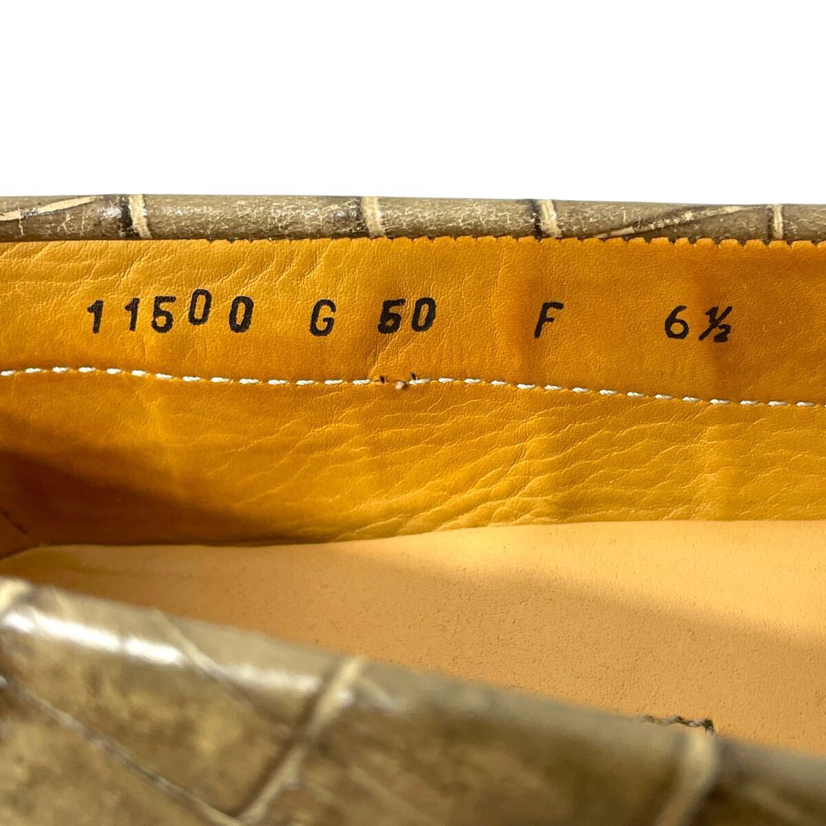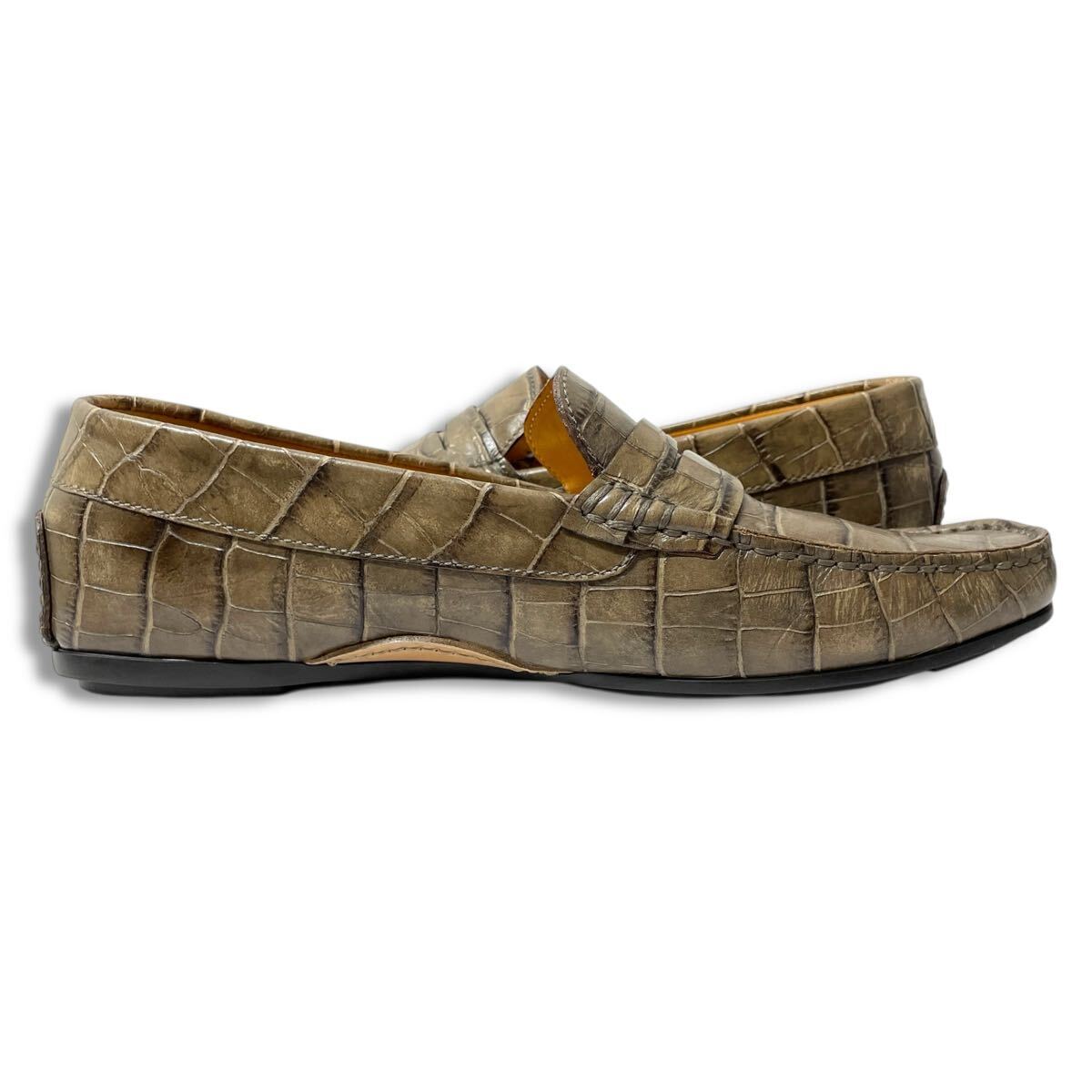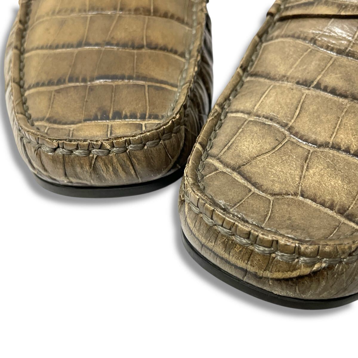 5 美品 正規品 SANTONI サントーニ 11500 G 50 F クロコ型押し コインローファー ドライビングシューズ 6 1/2 グレージュ メンズ グレー