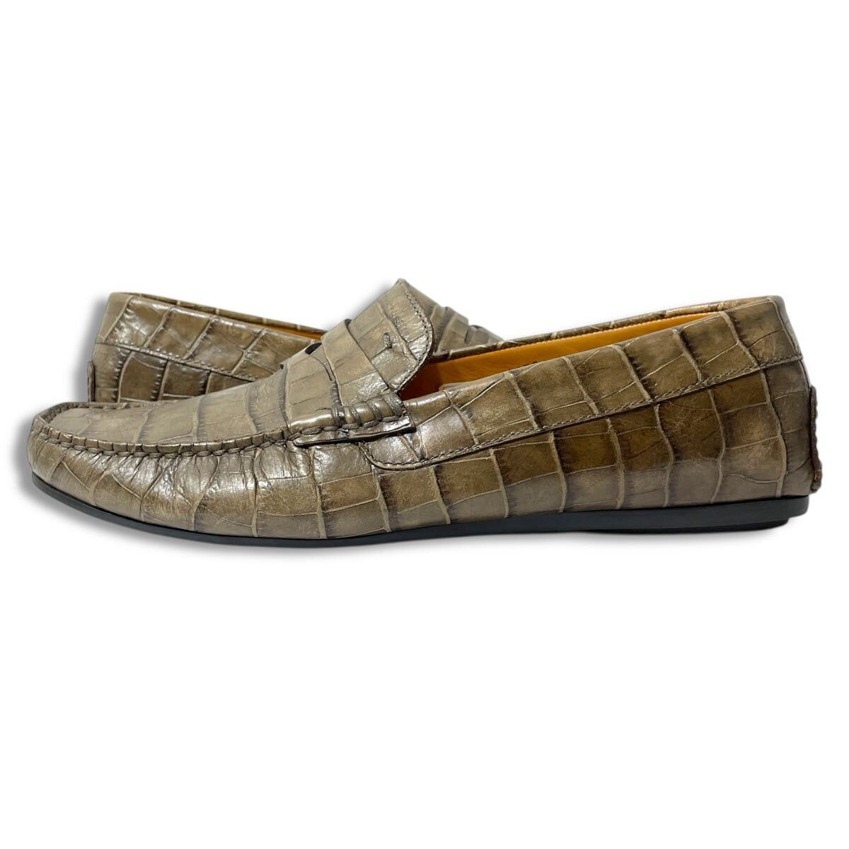 Product name: 5 美品 正規品 SANTONI サントーニ 11500 G 50 F クロコ型押し コインローファー ドライビングシューズ 6 1/2 グレージュ メンズ グレー