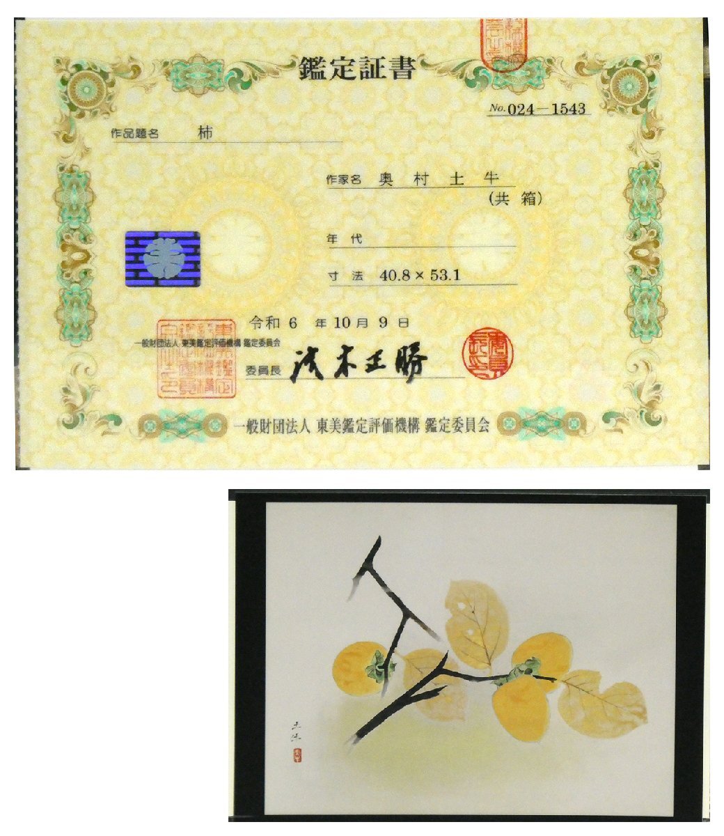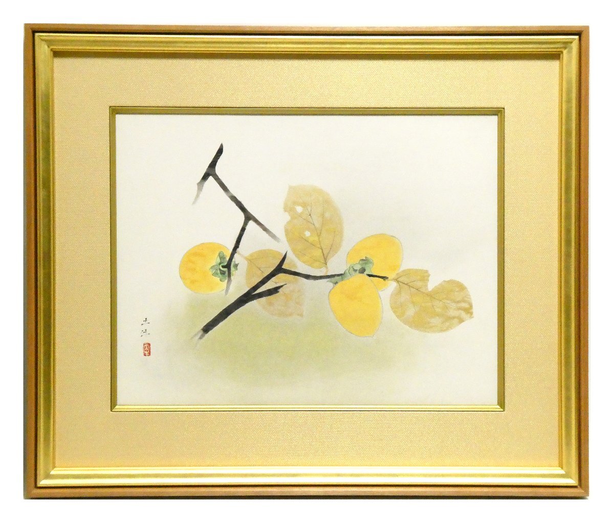 Product name: 祥【真作】奥村土牛「柿」日本画P10号 サイン有 額装 共板 鑑定書 東京出身 文化勲章 芸術院会員 直筆 一点もの 逸品!【ギャラリー祥】