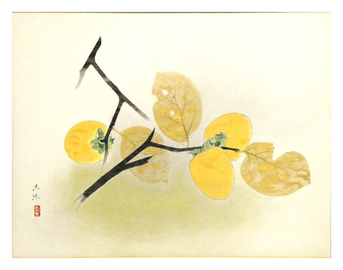 作品状態 柿に経年による僅かな縮み、中央に小点シミ(作品の美しさは損なわれておりません。)
