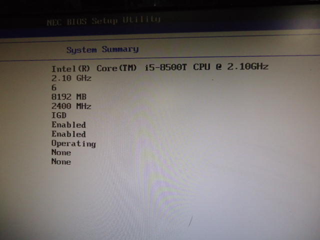 Product name: 6722★NEC MKM21C-4 Core i5-8500T SSD/無 メモリ/8GB 小型 BIOS確認