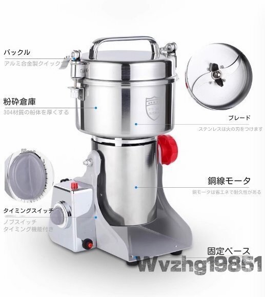 Product name: 家庭用 業務用 電動製粉機 ハイスピードミル コンパクト 粉砕機 800g 小型 電動ミルスパイス 穀物粉砕機 米粉 小麦 生薬 スパイス粉