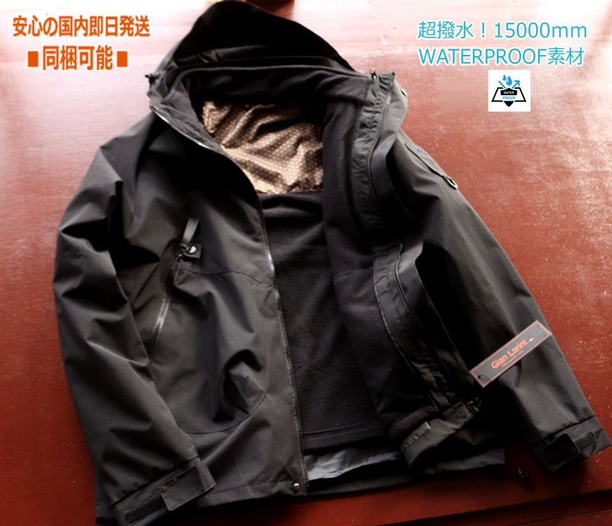新品 完売■秋冬GianLarini 2in1 暖かフリース+ジャケット セット 黒 XL★メンズ 2in1 マウンテンパーカー 撥水 軽量 アウトドア アウター