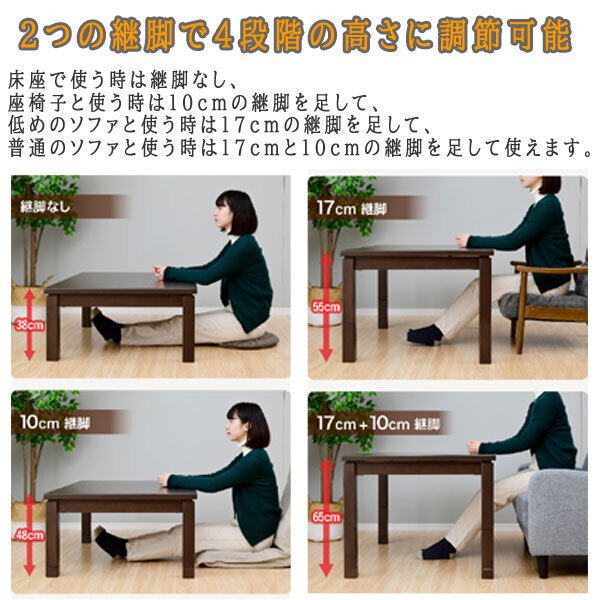 Product name: 送料無料■ym255■(251006)(240)高さが4タイプ選べるこたつ ピタ高 GEXN-F105H4N(WBR)(柊)【シンオクE】