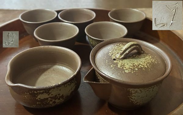 Product name: 備前焼 在銘 竹山 煎茶器 7点揃い◇宝瓶/急須/湯冷まし/湯呑/茶盃/茶碗/ぐい呑み/煎茶道具/茶事/茶祭/陶器/時代/骨董/古美術