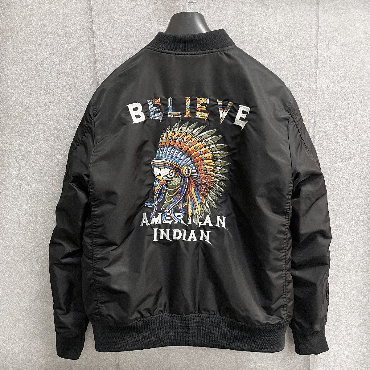 Product name: 高級・フライトジャケット/MA-1 定価7万◆Emmauela・イタリア・ミラノ発◆薄手 個性 INDIANS 豪華刺繍 アウトドアウェア L/48サイズ