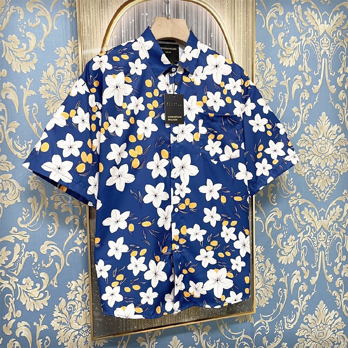 定価3万★christian milada・ミラノ発・アロハシャツ★上品 軽量 薄手 速乾 ソフト 総柄 半袖シャツ おしゃれ リゾート 定番 夏服 M/46サイズ