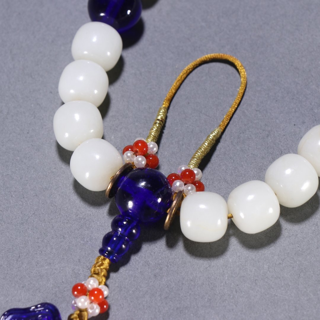Product name: 【安】清時代 和田玉 白玉 手持 青金石隔珠 極細工 古置物 古擺件 中国古美術 時代物 古董品 255