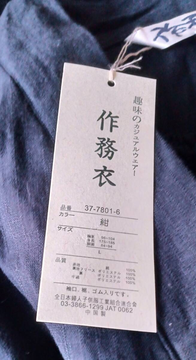 Product name: カジュアルウェアー『中綿 内フリース 作務衣☆表地綿100%☆Col.紺』L