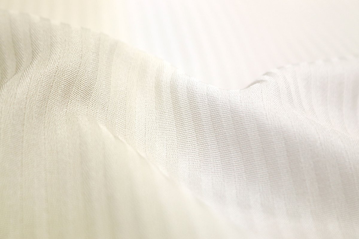しっとりとした上質な丹後ちりめんの生地は、砂色、枯野色のお色目でぼかし染めされております。生地には縞の地紋が織り込まれており、やや光沢感がございます。