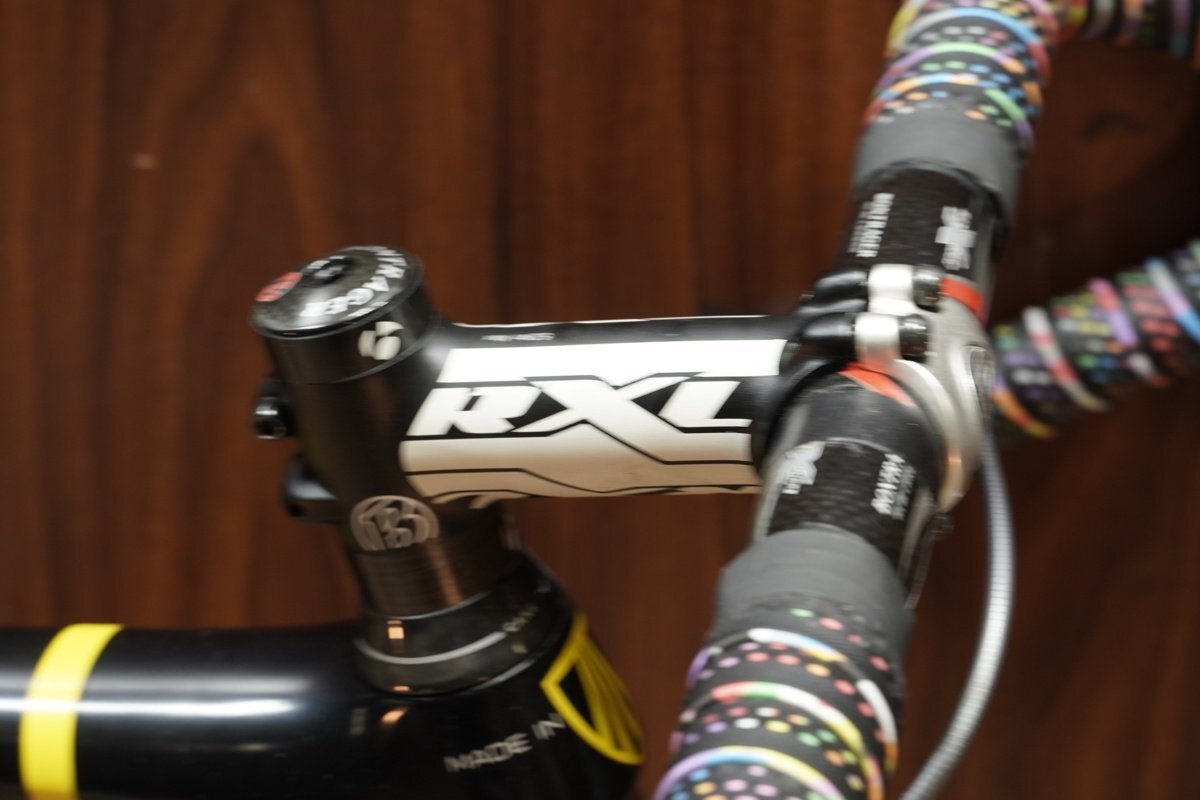 フレーム、コンポーネント全体的に使用感及び、小キズ、ダメージが少々ございます。~詳細~フレームシートチューブにシートマストクランプキズがございます。フロントフォーク内側に塗装ハゲ、その他小キズ程度でキレイな状態です。コンポーネントクランク、リアブレーキに小キズがございますが、その他大きなキズ等も無くキレイな状態です。ホイール比較的キレイな状態です。