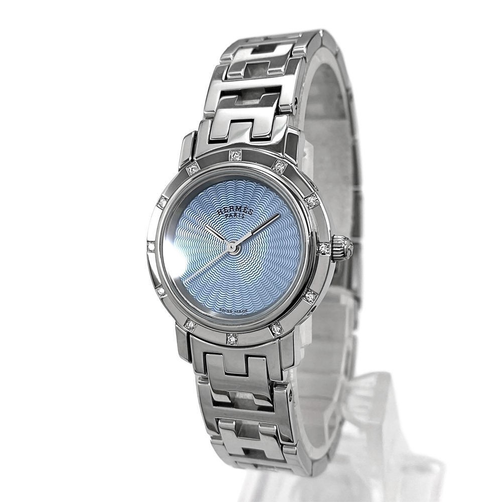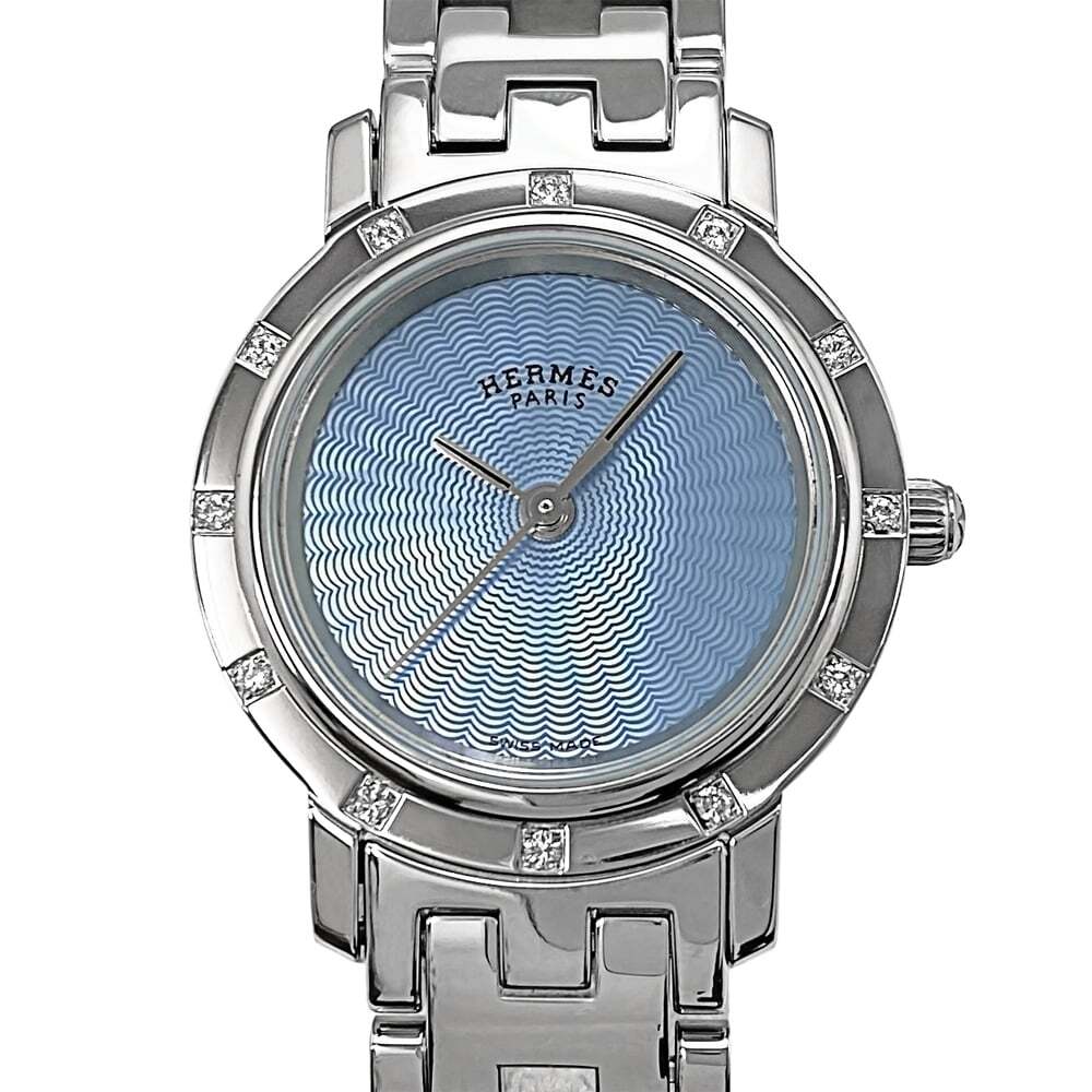 [中古] エルメス クリッパー ナクレ CL4.230 クォーツ ステンレススチール 12Pダイヤモンドベゼル ブルーシェル文字盤 磨き済 24mm HERMES