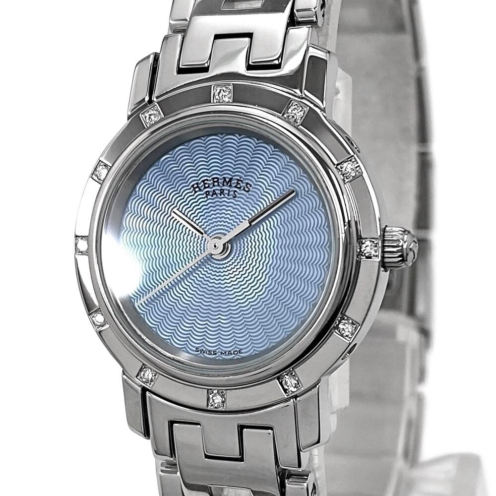 Product name: [中古] エルメス クリッパー ナクレ CL4.230 クォーツ ステンレススチール 12Pダイヤモンドベゼル ブルーシェル文字盤 磨き済 24mm HERMES