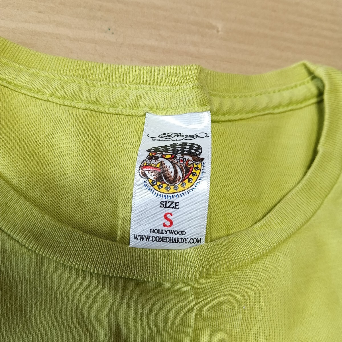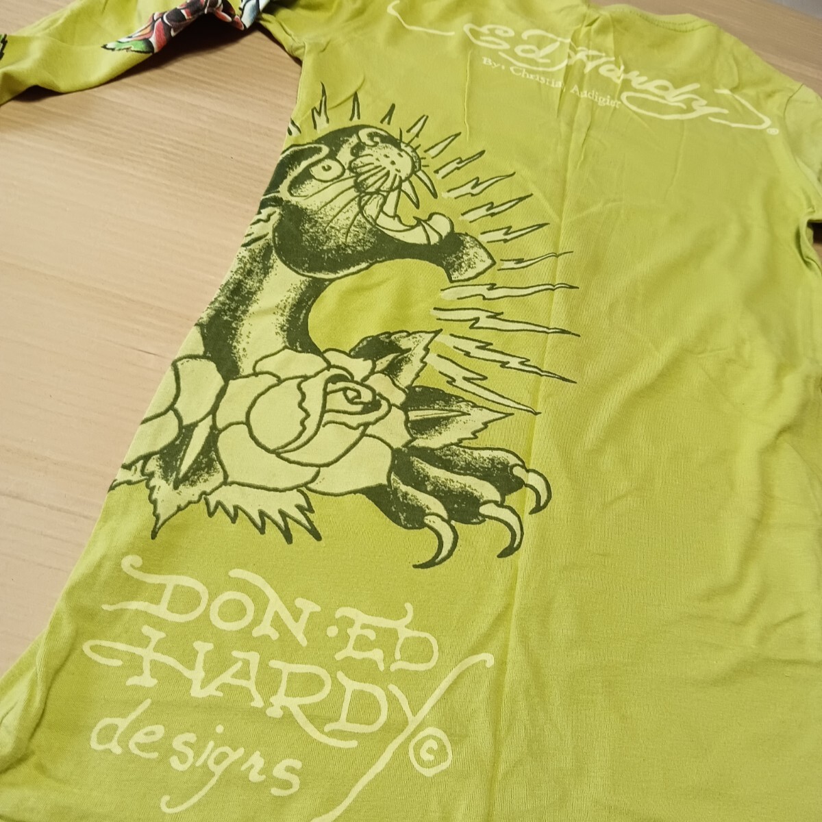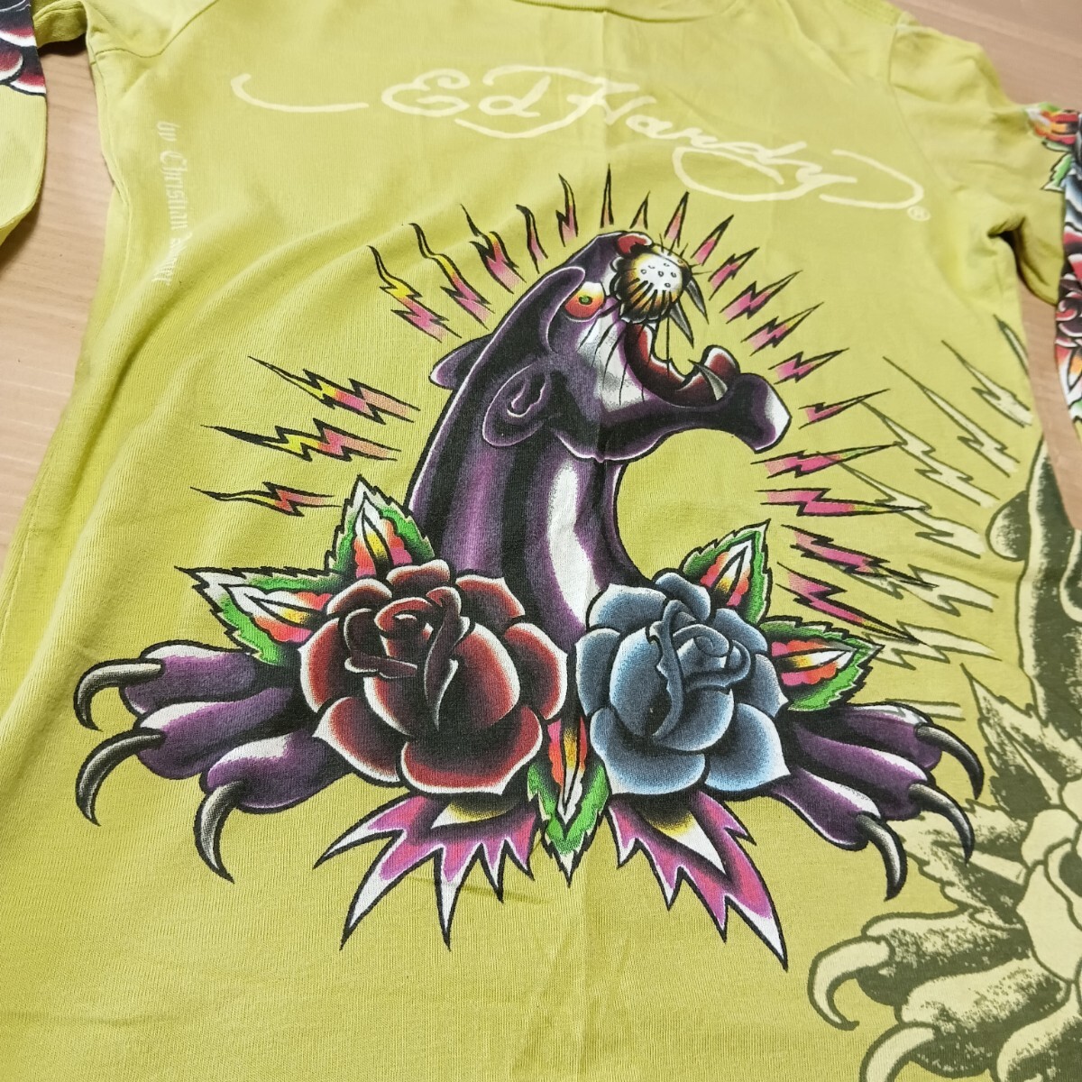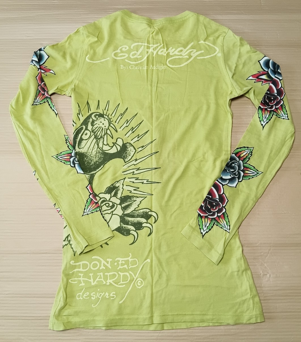 Ed Hardy エドハーディー 長袖Tシャツ パンサー 薔薇 レディース 黄緑 S サイズ 127-039141