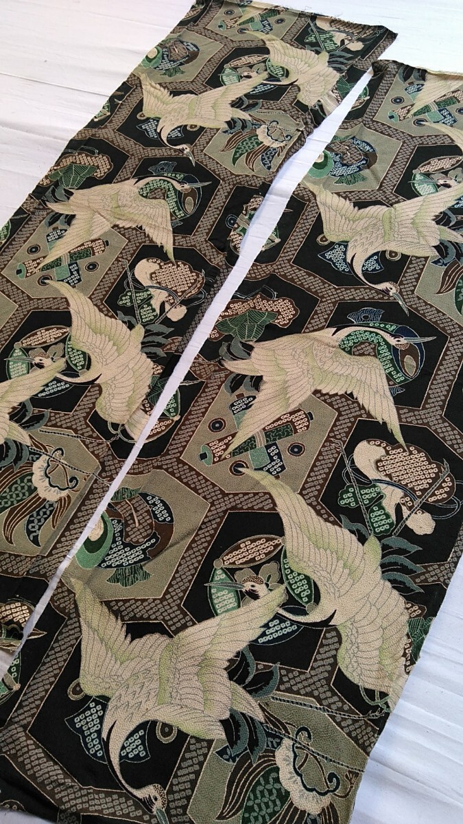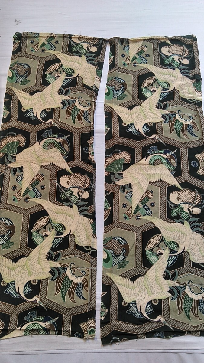 Product name: 古布 古裂 レトロ 縮緬生地 鶴柄 濃い深緑色 薄い深緑色 2枚 リメイク