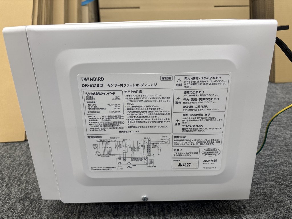 ◎TWIN BIRD ツインバード センサー付フラットオーブンレンジ 家庭用 DR-E216型 2024年製 TW210611