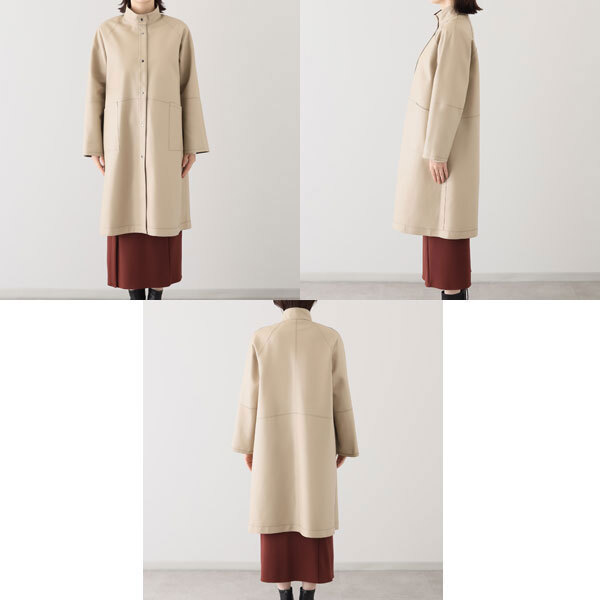 シャツライクな軽やかさを持たせたスタンドネックが、