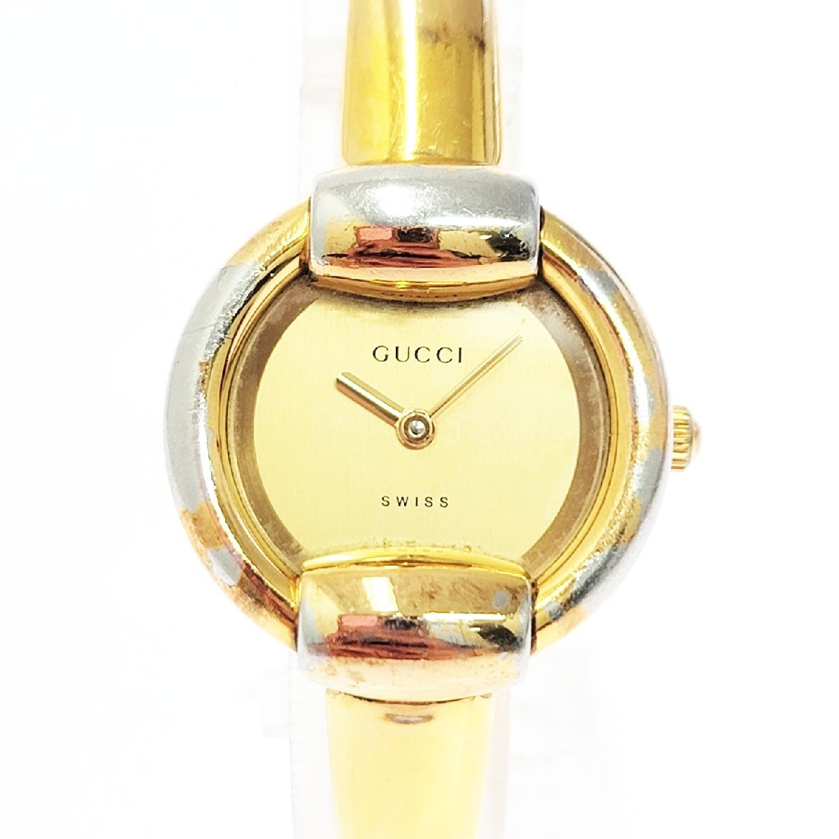 【1円スタート】GUCCI グッチ 1400L バングルウォッチ GP ゴールド文字盤 クオーツ レディース腕時計 510923