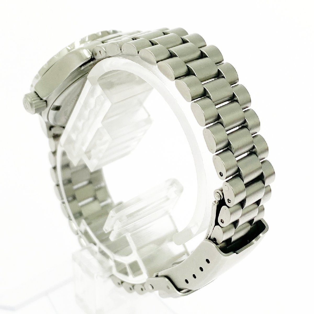 文字盤/針に若干のヤケ・チリ・黒ずみ、SS部分に擦りキズ・薄汚れがみられます。