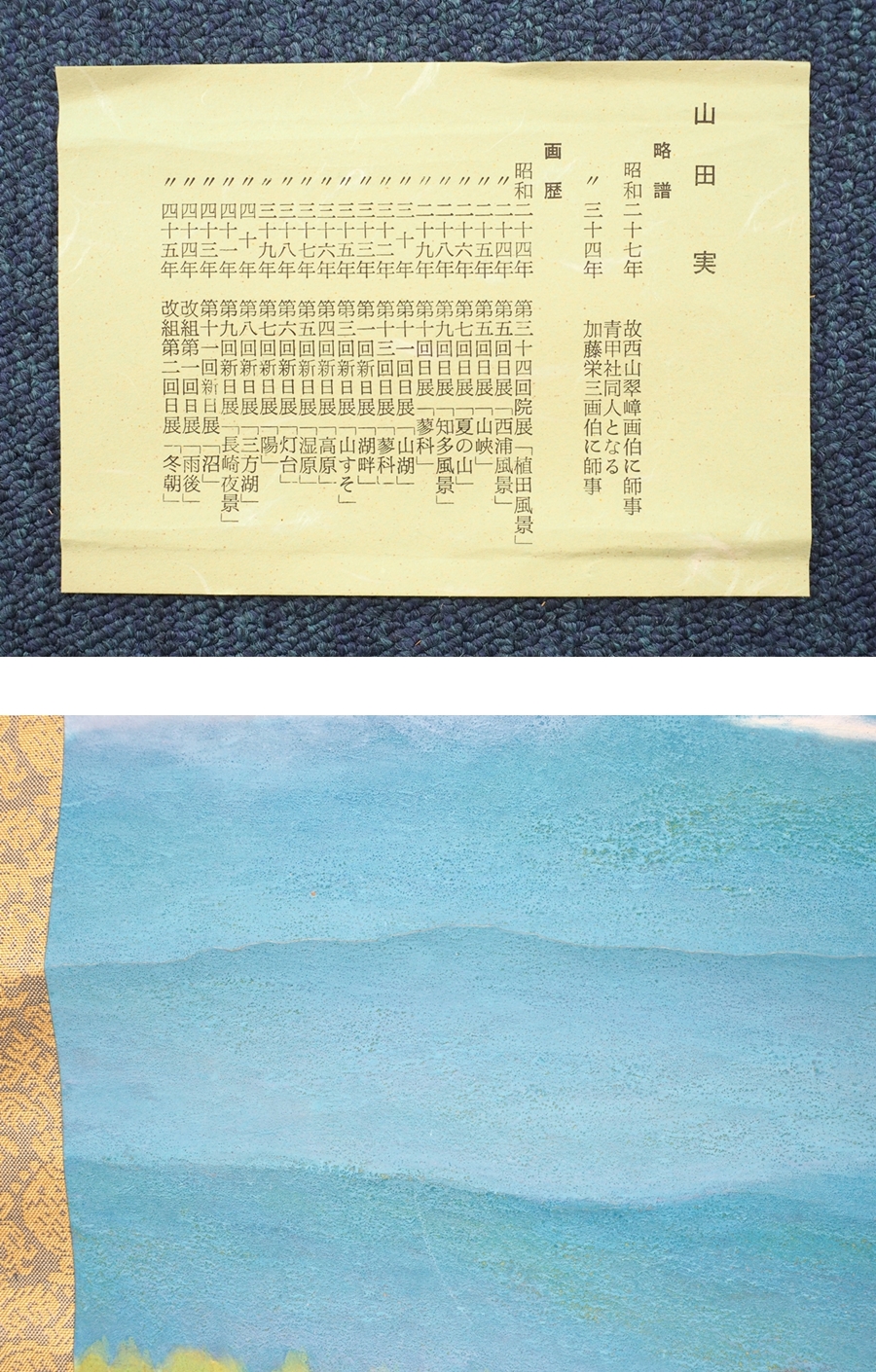 Product name: 【真作】【渡鹿庵】[山田実] 17067 掛軸 日本画 「鈴蘭高原」 共箱 太巻 二重箱 紙本 風景画 茨城 水戸 師西山翠嶂 加藤栄三 在銘